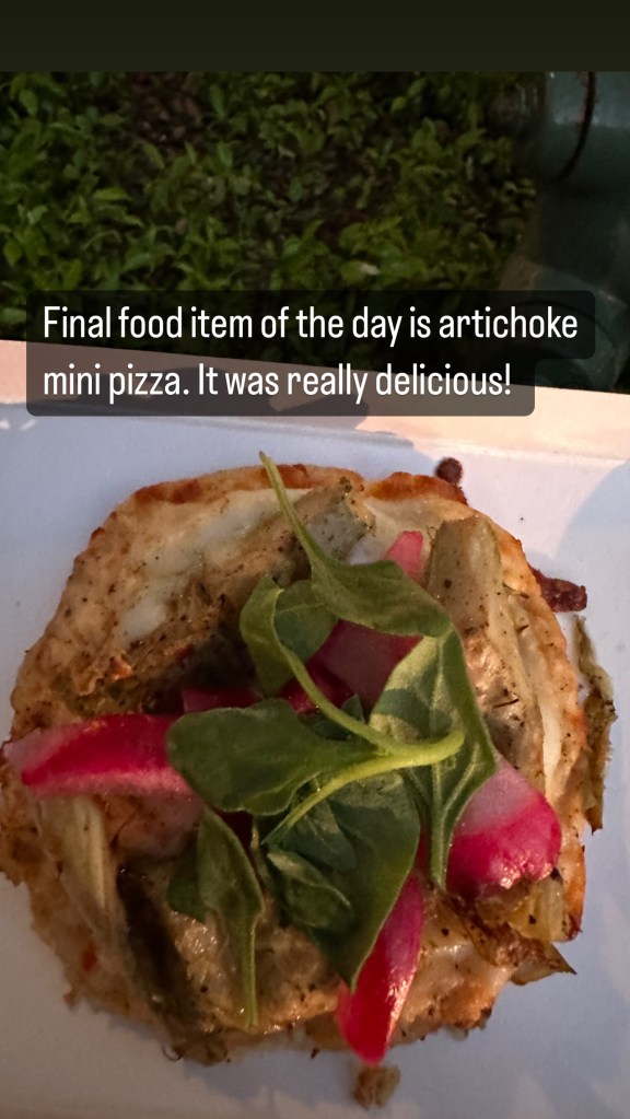 • I also went to I Heart Artichoke with Artichoke Pizzetta: Artichoke & Roasted Garlic Cream Cheese with Sun-dried Tomatoes, Pickled Onions, and Lemon Olive Oil-drizzled Micro Greens, per the menu.