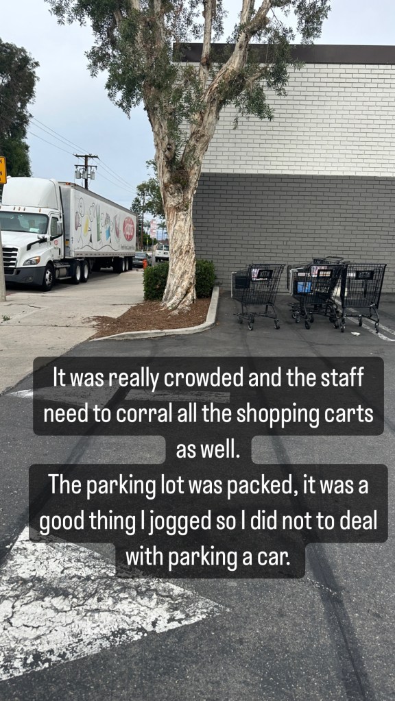 I got to the store in 20 minutes and it was a good thing I did not drive as the parking lot was packed in thanks to being Saturday & an incoming storaboutwas fairly packed in relation to the packed parking lot. With the storm and a delivery truck unloading, Ralph’s staff was fervently restocking shelves as fast as customers were buying things in a panic, especially since most of the water & bread were out.