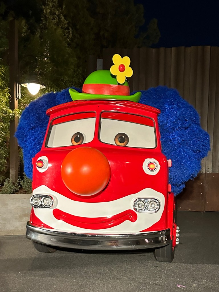 After that, there was a trick-or-treat trail at the Radiator Springs Racers viewpoint area of Carburetor Canyon, however, without villains due to the small space of the area & lack of villains in the Cars movie. Then we checked the wait time for Radiator Springs Racers, which was an hour, so we decided to pass. Then we got pictures of two of the Cars characters in their Halloween costumes, Cruz Ramirez as a pirate, and Red the fire engine as a clown.