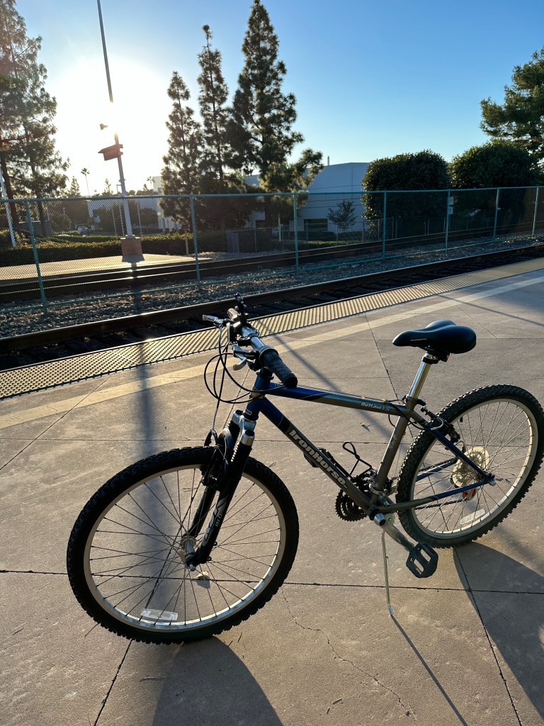 I ran a bit late but arrived on time at the Anaheim train station, or the proper name, Anaheim Regional Transportation Intermodal Center (ARTIC). I had trouble finding my bike lock key. I made it to the station three minutes before the train arrived, which was late, thank God! My bike was a gently used IronHorse Outlaw FS, which I bought from one of my coworkers. Besides the front tire bike tube was ripped up, the bike was in good shape.