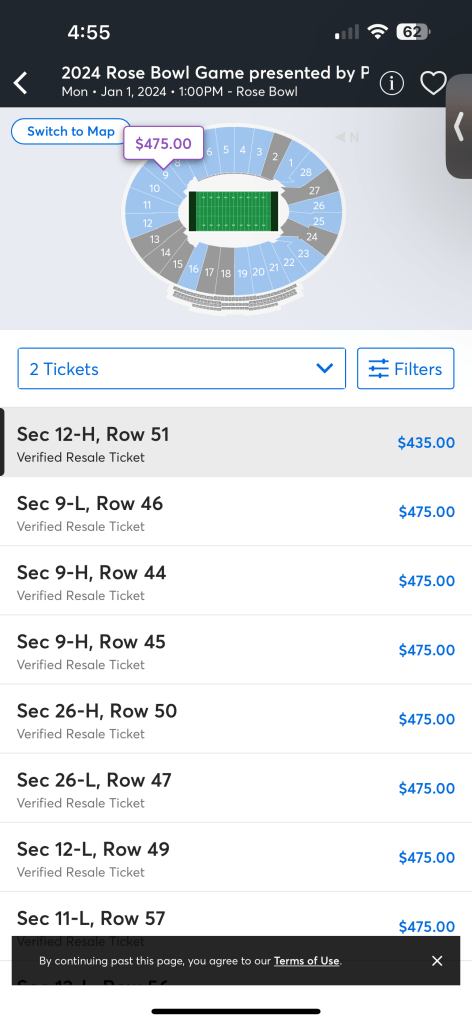Now at the Rose Bowl Stadium, called “Welcome to the Granddaddy of them all, the Rose Bowl!”- broadcaster Keith Jackson. The Rose Bowl opened in 1922 with a modern-day capacity of 92,500. It is owned by the city of Pasadena and operated by Rose Bowl Operating Company. The Rose Bowl game started in 1902 at Tournament Park near CalTech and then it moved to the Rose Bowl when it opened. It now serves as the semifinal game for the college football championship, for this season is the University of Michigan vs University of Alabama. Both are huge football schools, so ticket prices for the game are well over $500 for nosebleeds, along with $50 parking, concession stands, lodging for out-of-towners, and more. I am sure the city of Pasadena rakes in so much money from the parade and the game.