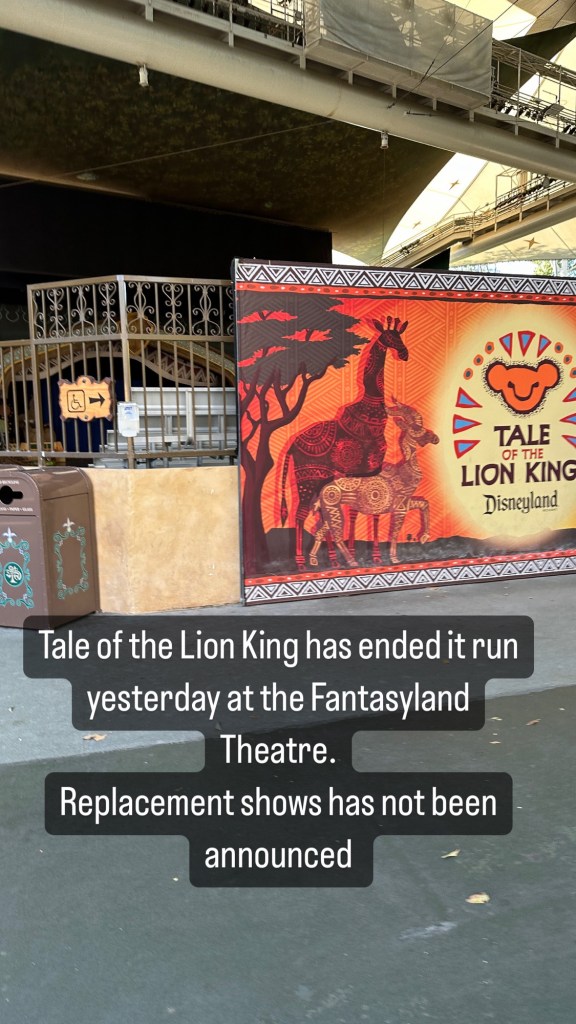 In Fantasyland, It’s a Small World will be closed from January 7 to 18 for holiday decoration removal. Then across the way at the Fantasyland Theater, Tale of the Lion King stage show closed and had their final curtain call on January 7. With the closure of Roger the Musical in August as well, there won’t be a major musical stage show for a while.