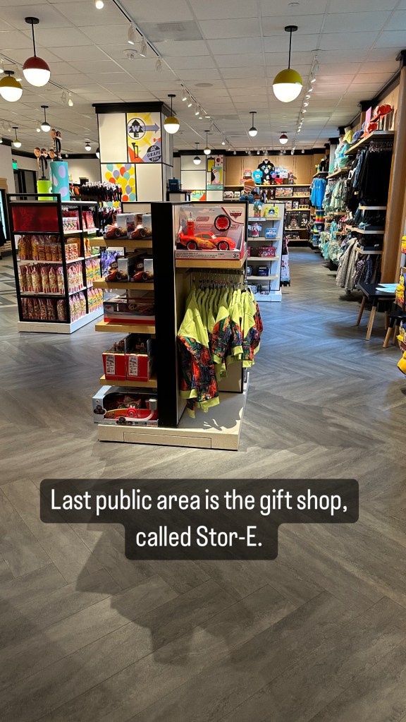 Their gift shop with Pixar movie merchandise is called Stor-E, like Wall-E sound.