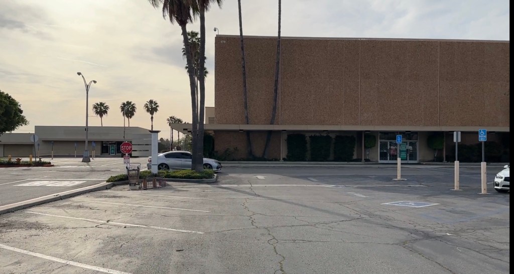 With plenty of car traffic, you would be somewhat right if you think it is a strip mall, which it seems more like it is from the front with massive parking, restaurants, grocery stores, and more. It actually had an indoor mall area, a JCPenny that closed in 2017, and a huge former Sears store that predated the mall being added, closed in April 2021. The only Sears in SoCal that are left as of March 2024 are in Whittier and Burbank, according to the Sears locations finder.