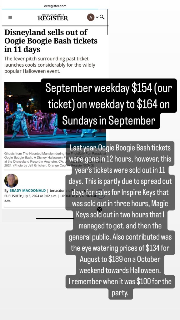 The parties are always popular with the tickets usually selling out in just days like 2021, in hours like 2022 & 2023. Still, this year of 2024, the hype died down and it took two weeks to sell out all the party tickets according to the OC Register. If you were planning going with someone as I did with my family, we had to coordinate to buy the tickets for the specific date and get time off from work as needed if you are making a trip out of it, or suffer with five hours of sleep if you are a local like us with work or school the next day. We chose Thursday, September 12, 2024 and I requested the day off, which thankfully I did since we did not get back to the apartment until midnight. Yet, my dad & sister had to wake up as normal for work the next day.