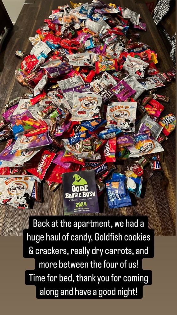 Back at the apartment, we had a huge haul of candy, Goldfish cookies & crackers, really dry carrots, and more between the four of us!