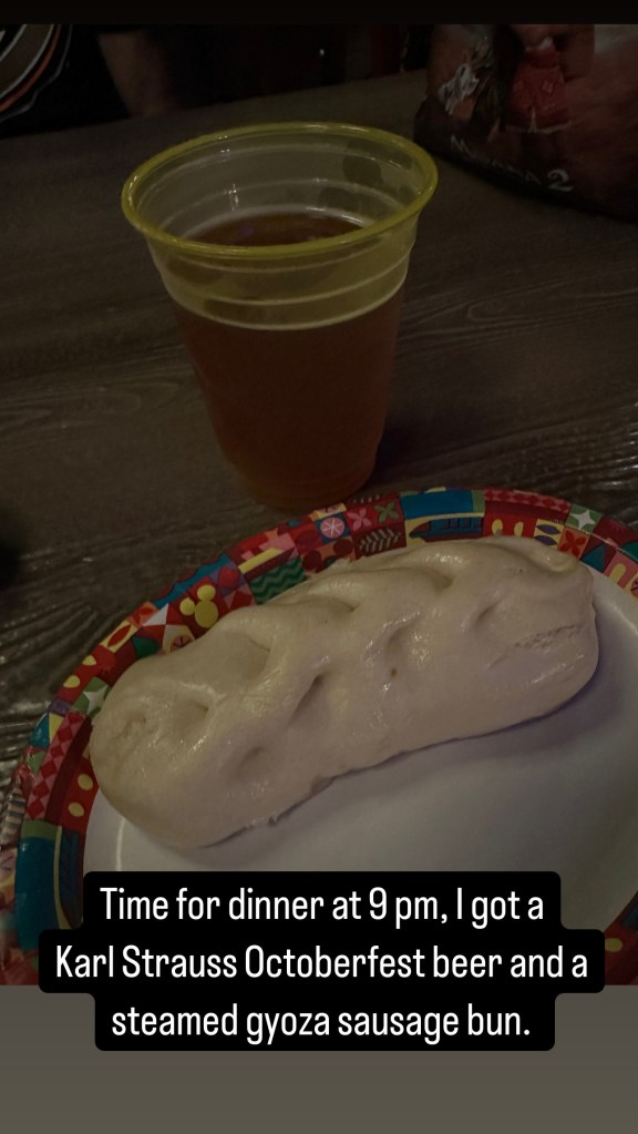 At San Fransokyo Square we quickly grabbed dinner. Went to the Karl Strauss Brewery, where I got two sausage buns, one fried & one steamed, which I ate before I took the picture. I washed it down with a Karl Strauss Oktoberfest beer!