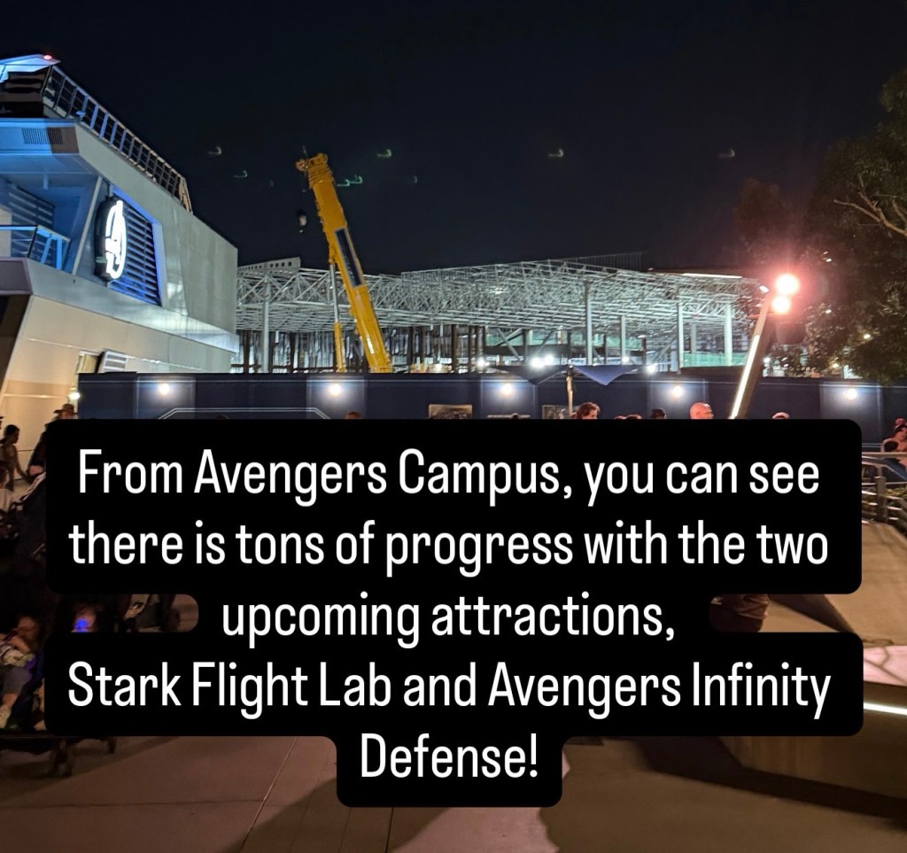 From Avengers Campus, you can see there is tons of progress with the two upcoming attractions, Stark Flight Lab and Avengers Infinity Defense!