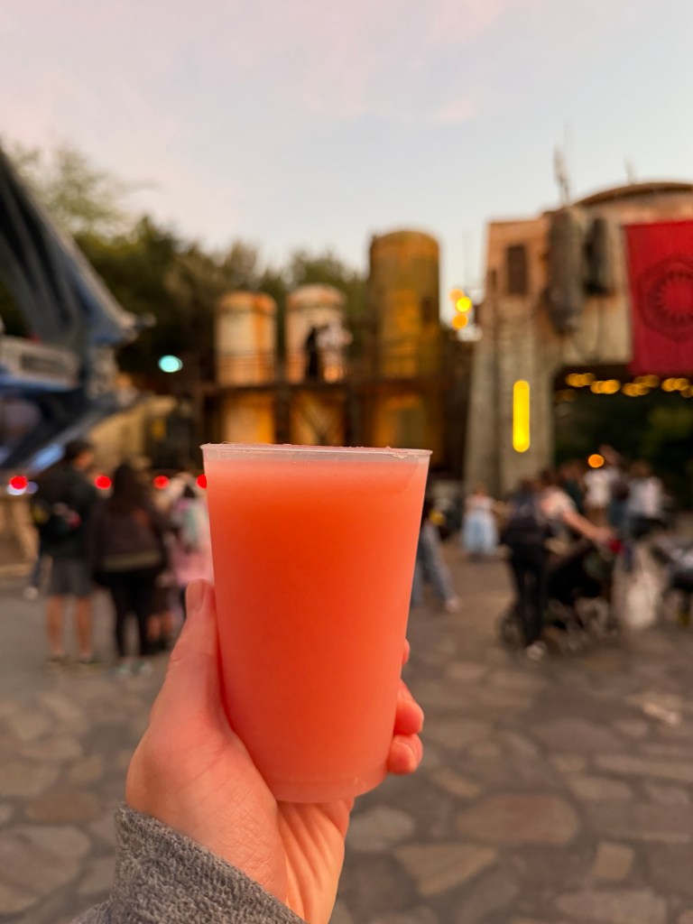Disneyland’s Star Wars Galaxy Edge, the Milk Cart is always known for their interesting plant based drinks. Blue milk with coconut & rice milk with fruity flavor, and Green Milk with citrus & tropical flavors. The newest milk added to the line up is the Pink Milk, rice milk with a fruity & sweet flavor that has the flavor of strawberry, banana & bubblegum. It was quite interesting. For all of you Green milk fans, the Pink Milk temporarily replaced the green milk.